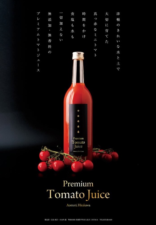 青森県平川産トマトの旨みを凝縮。濃厚でまろやかな味わいのジュースは、食事のお供やリフレッシュタイムにぴったりです。